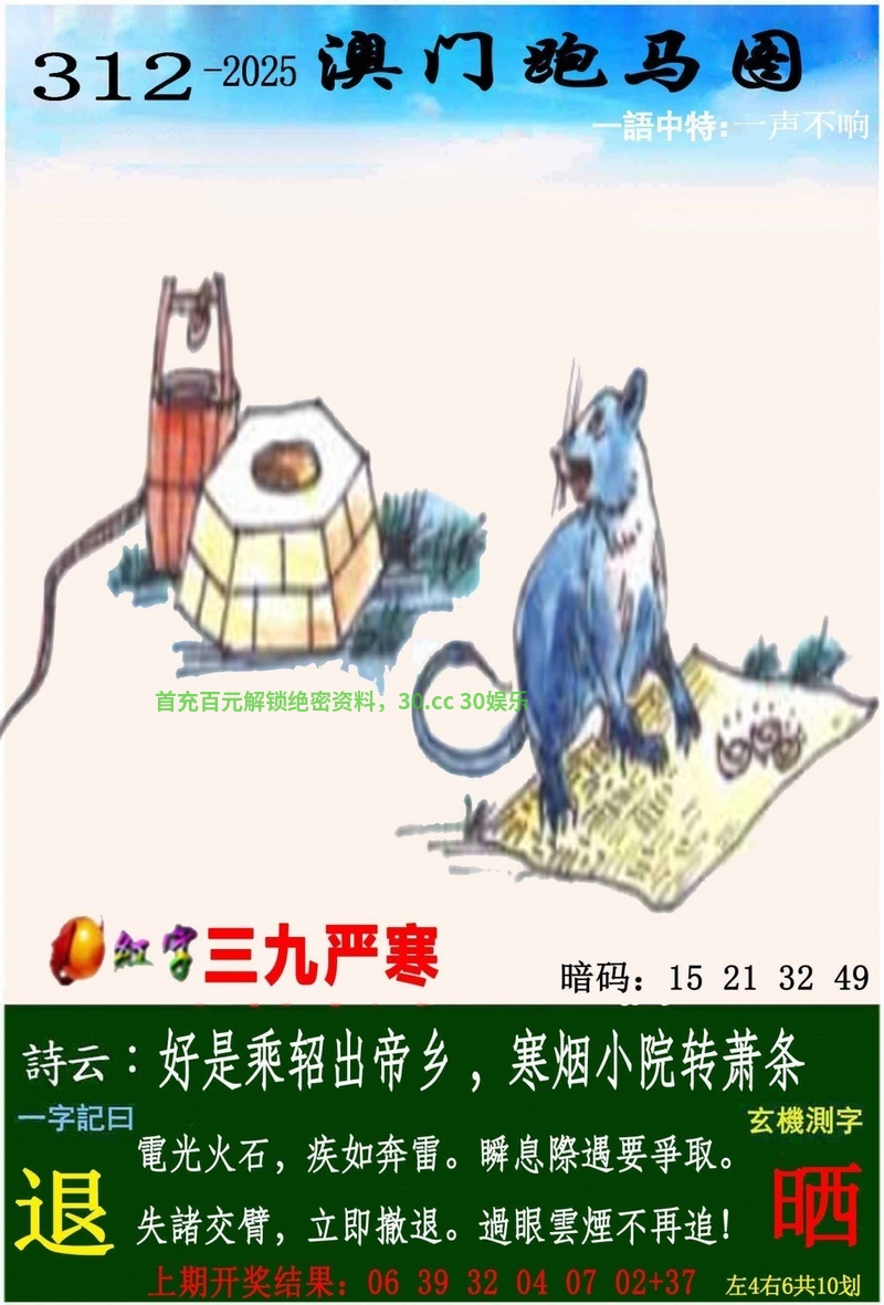 309期:🐲内幕家野🐔【野兽】开:鼠06准